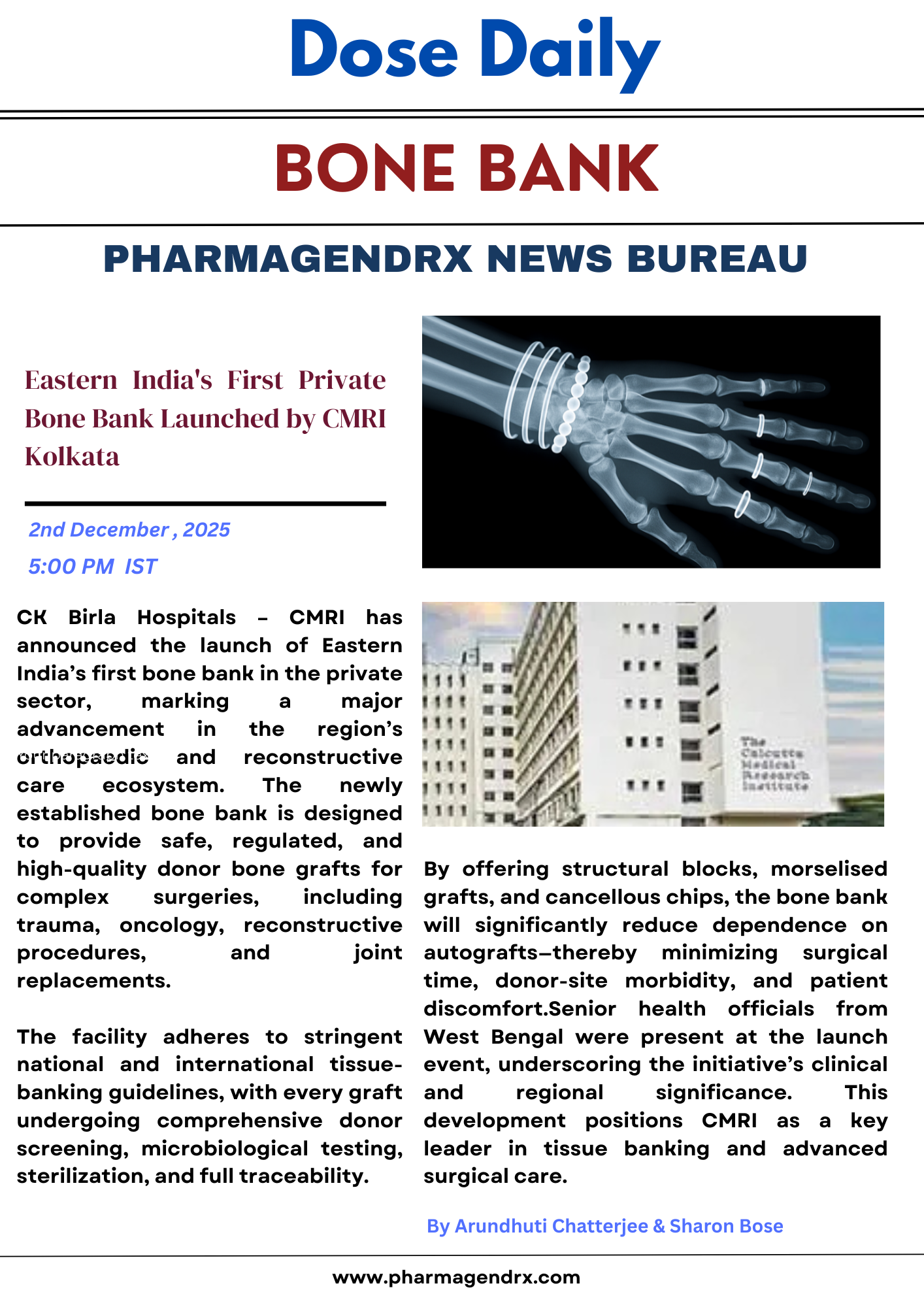 Eastern India’s First Private Bone Bank Launched by CMRI Kolkata