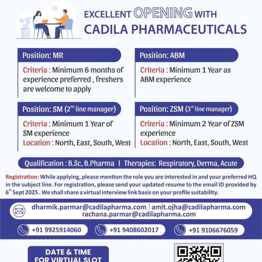 Virtual Drive – Excellent Career Opportunities with Cadila Pharmaceuticals