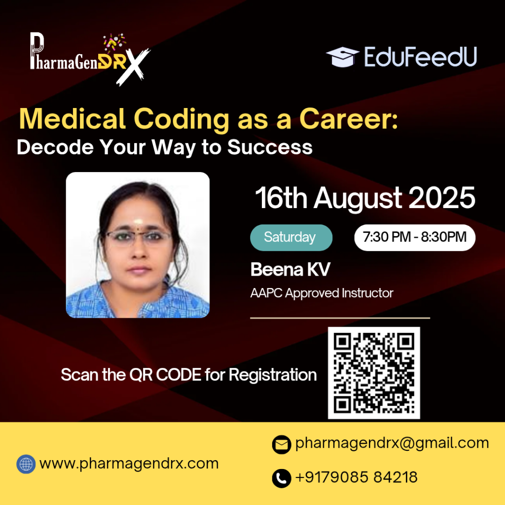 Join us for a focused, career-building session with Beena KV, an AAPC Approved Instructor, who will demystify medical coding as a high-value, future-ready career path. This one-hour masterclass is designed for students, fresh graduates and professionals from pharma, life sciences, and healthcare who want practical, actionable steps to start or accelerate a career in medical coding.